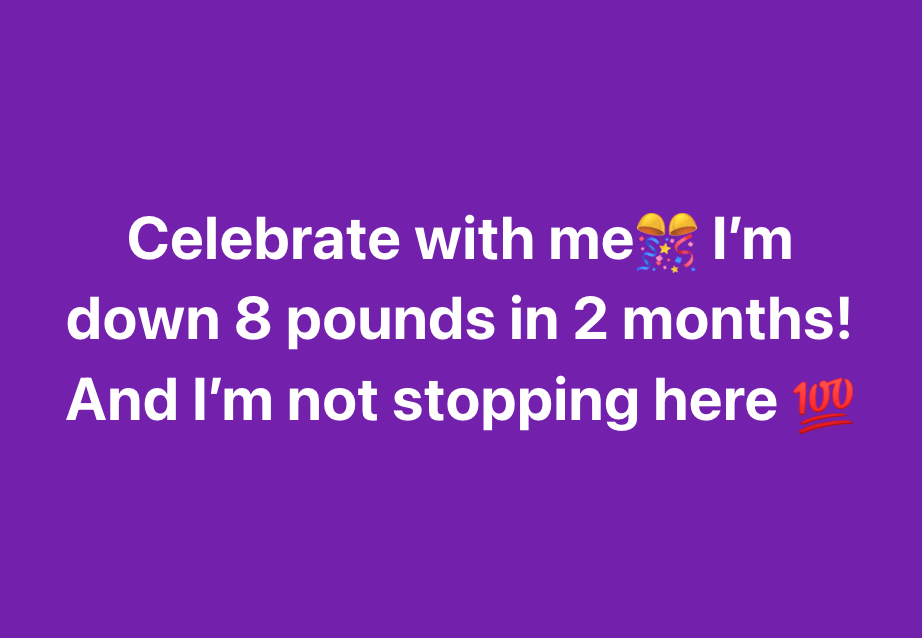 These are proven block posts that work. Keep it simple! Create curiosity. Use this kind of post often to share your results and pique interest. There are a variety of posts here: "celebrate with me," "wish me luck," "giveaway posts," "I'm about to..." "I'm officially down...," "off the scale wins" and so many more. Take a look at all the examples and get inspiration to share your own story.
