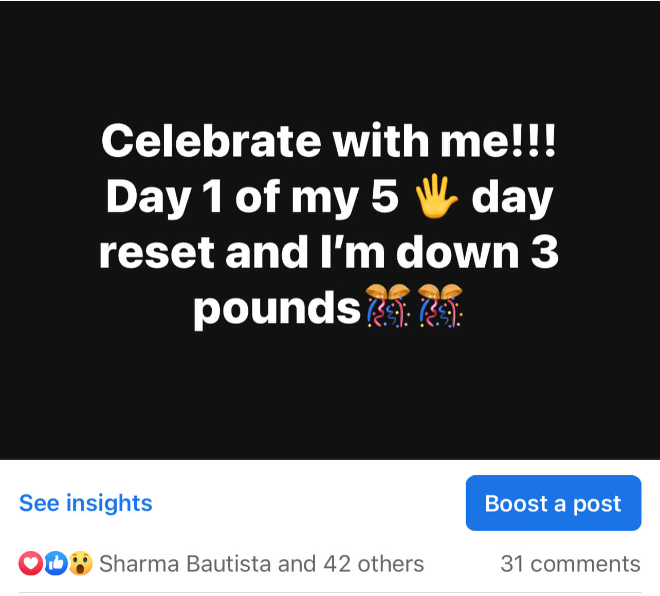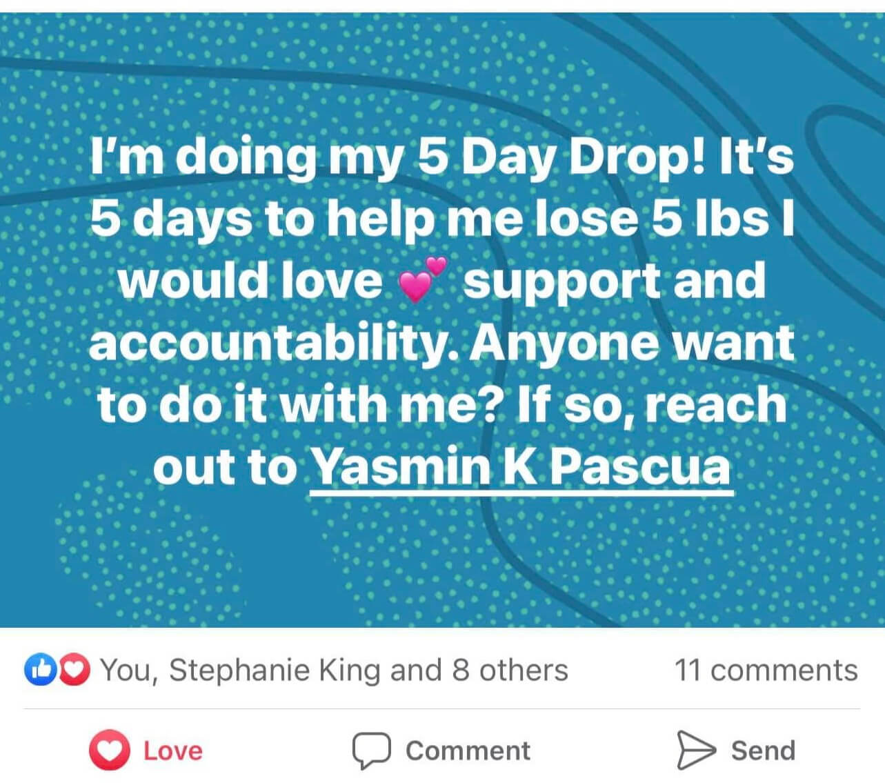 This post is a box post, go to your FB app on your phone and choose a "colored box" and write a curiosity post about the 5 day drop, your weight loss experience (if you haven't done the drop yet) or your excitement to do the drop.