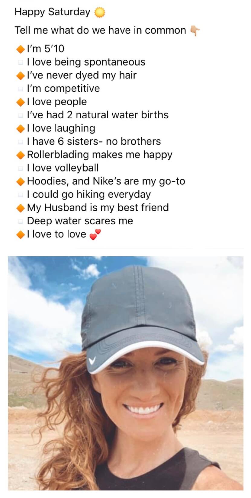 Give them a picture and post of you that they can connect with.