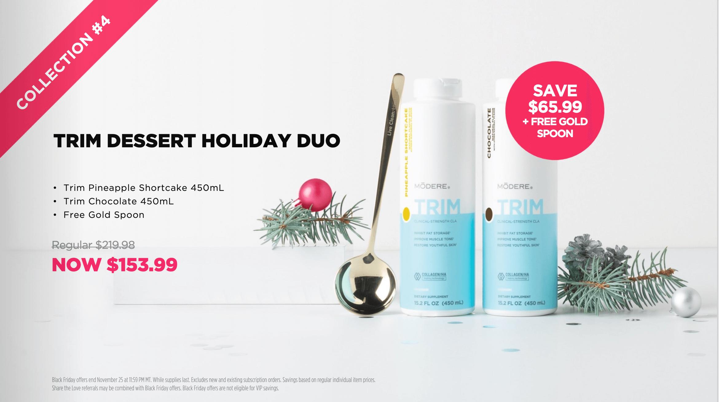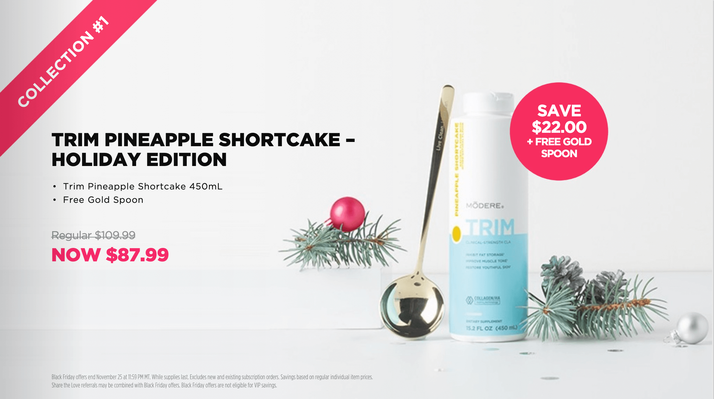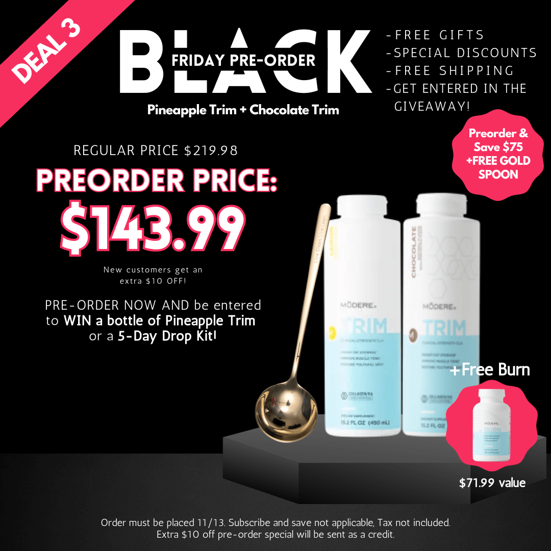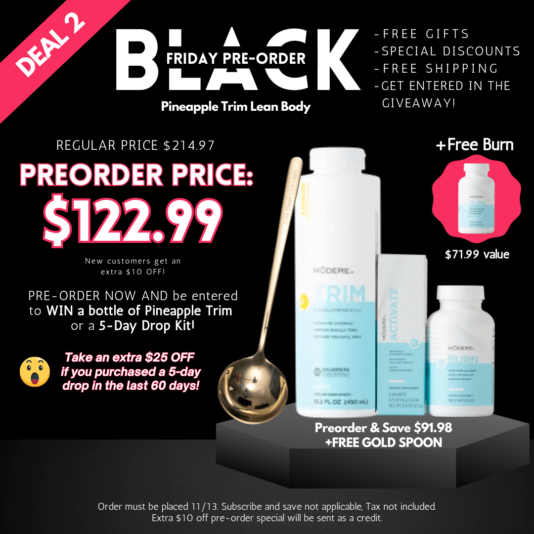 We have tons of savings, free gifts and special packages that we put out just for Black Friday. This includes our special seasonal PINEAPPLE SHORTBREAD flavor of Trim! Every year we put out a special flavor of Trim which is also a great reason to recommit to your weight loss goals! New flavor, new goals! If at anytime you have questions or want to order get back to the person you're working with and they can help you get going.