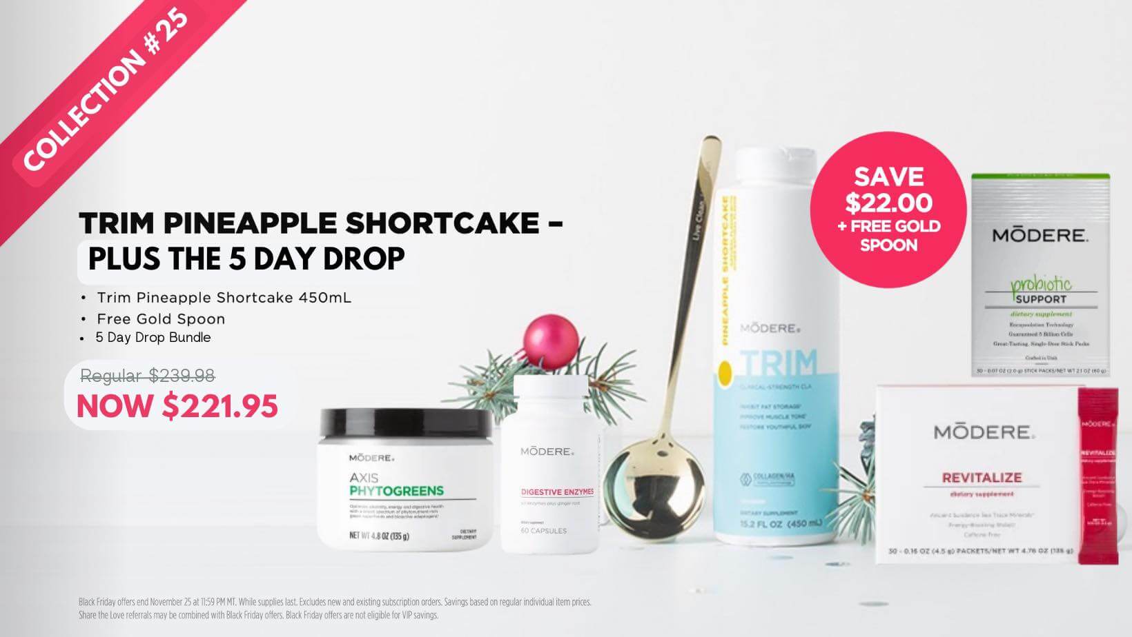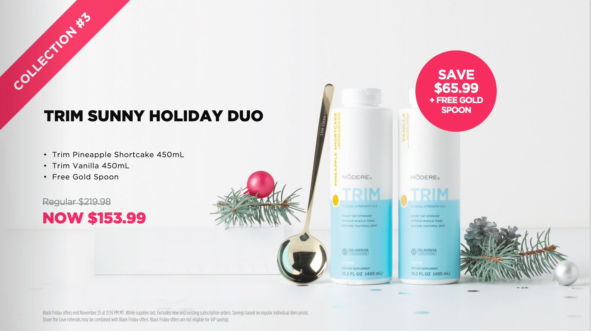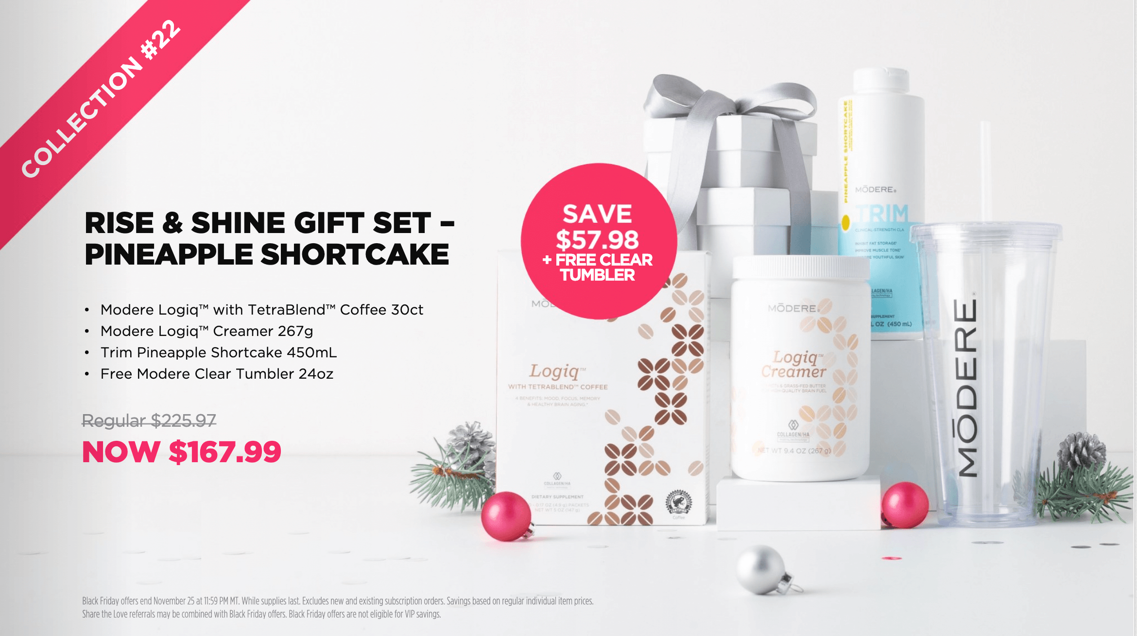 We have tons of savings, free gifts and special packages that we put out just for Black Friday. This includes our special seasonal PINEAPPLE SHORTBREAD flavor of Trim! Every year we put out a special flavor of Trim which is also a great reason to recommit to your weight loss goals! New flavor, new goals! If at anytime you have questions or want to order get back to the person you're working with and they can help you get going.
