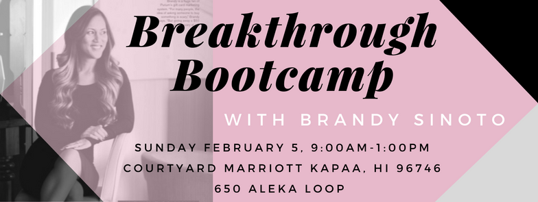Join me, Sunday February 5th (9am-1pm) at the Courtyard Marriott in Kapaa, Hawaii for my Breakthrough Bootcamp! Click here for tickets to this special event!