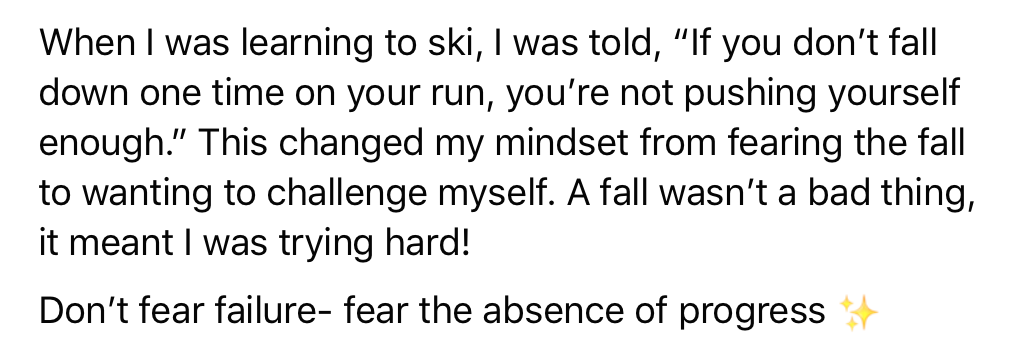 Use the post below as inspiration but you can take the idea and write your own post with your picture. You can take the quote "The one who falls and gets up is so much stronger than the one who never fell," and post it with a picture of YOU. Use just the quote, or use the quote to start you off and then share your ideas about trying and falling and getting back up.