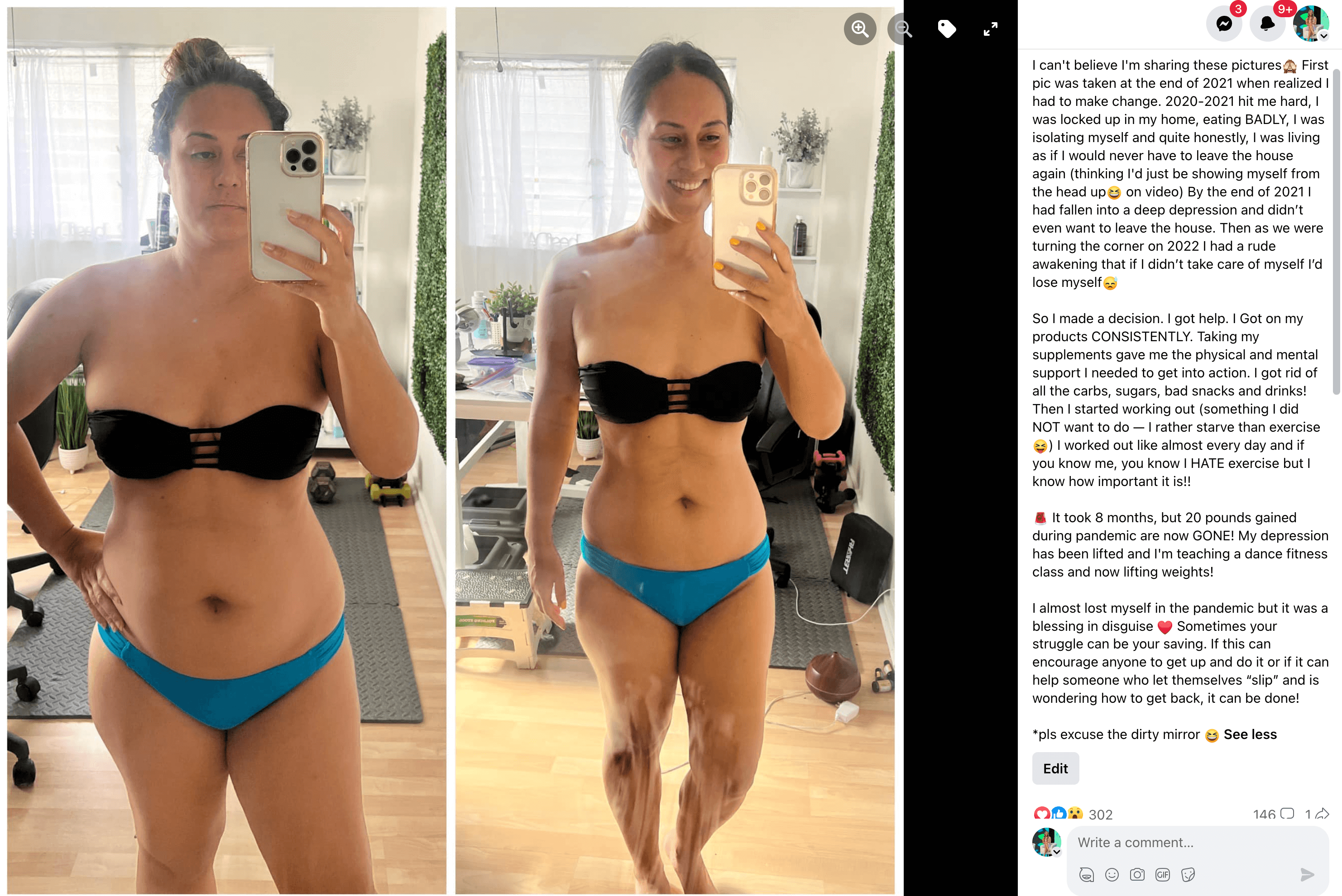 If you don't have results to share yet, it's ok, you can share someone elses results. Shout them out on your page, share how excited you are to be celebrating others who are winning and send it to the team engagement pod/chat to boost comments (keep in mind, your following will not always comment on these types of posts because they don't want others to see them commenting...but trust me they still see it)