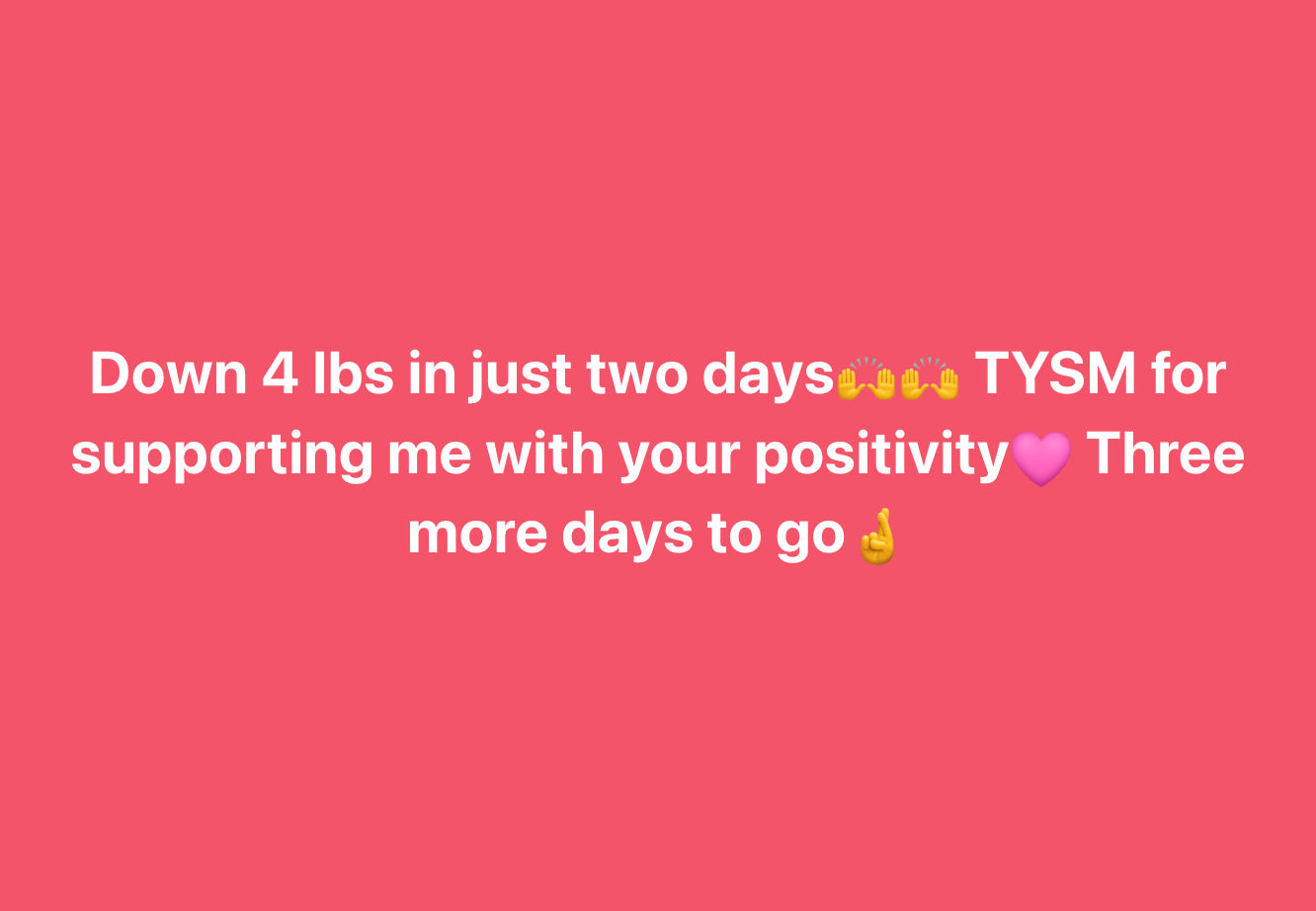 Down 4 lbs in just two days🙌🙌 TYSM for supporting me with your positivity💗 Three more days to go🤞