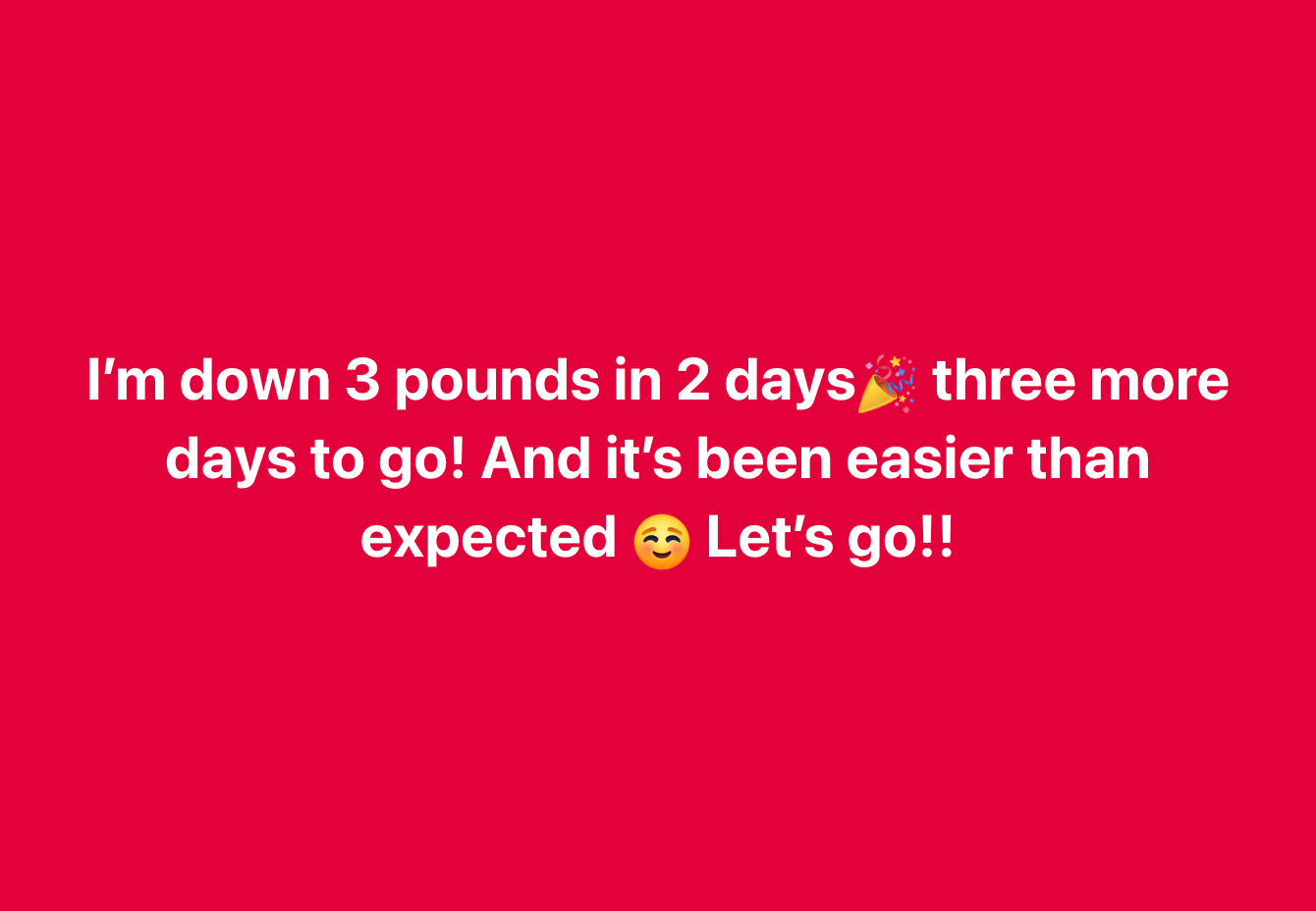 I’m down 3 pounds in 2 days🎉 three more days to go! And it’s been easier than expected😊 Let’s go!!