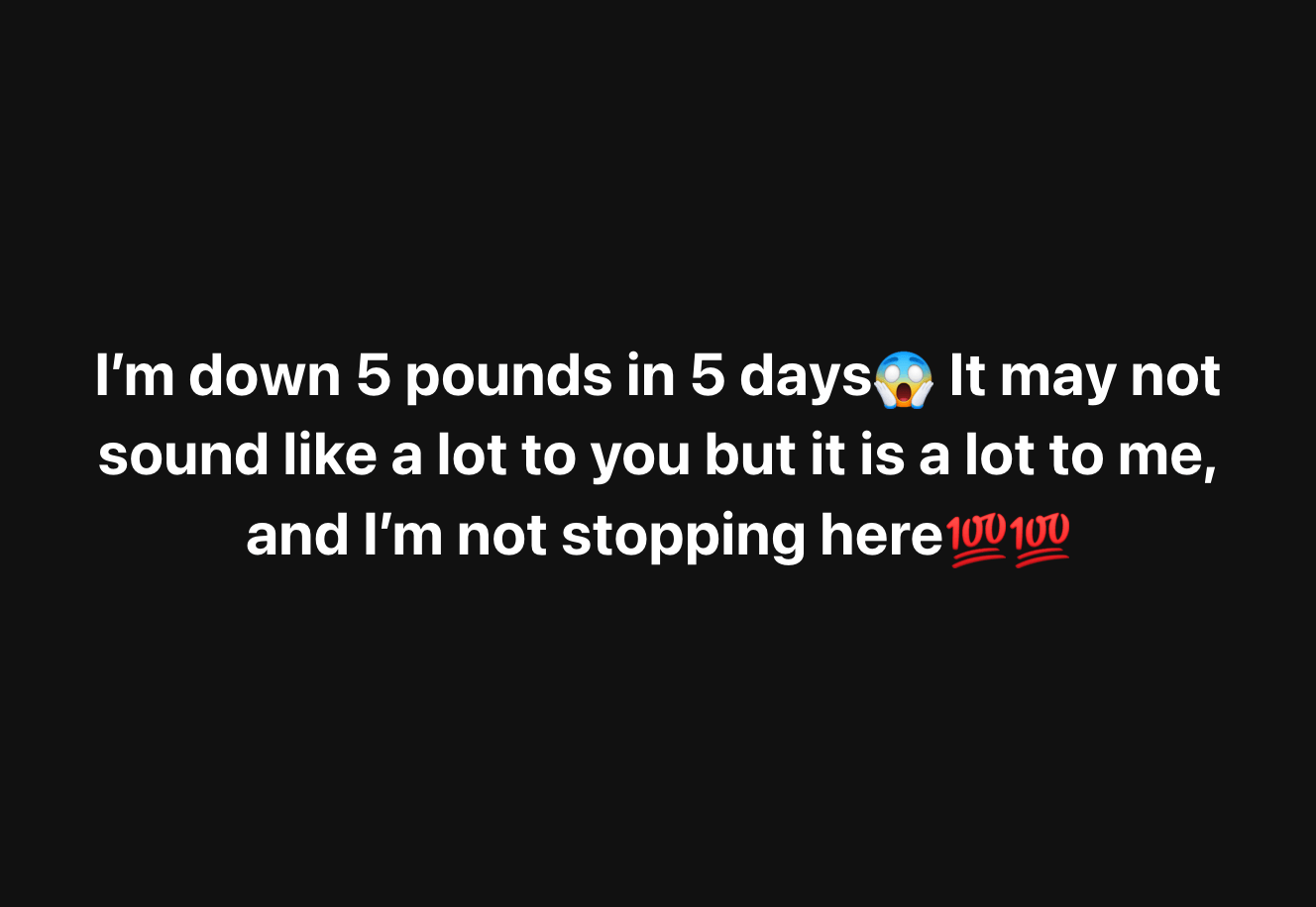 I’m down 5 pounds in 5 days😱 I know it doesn’t sound like a lot but it is a lot to me, and I’m not stopping here💯💯