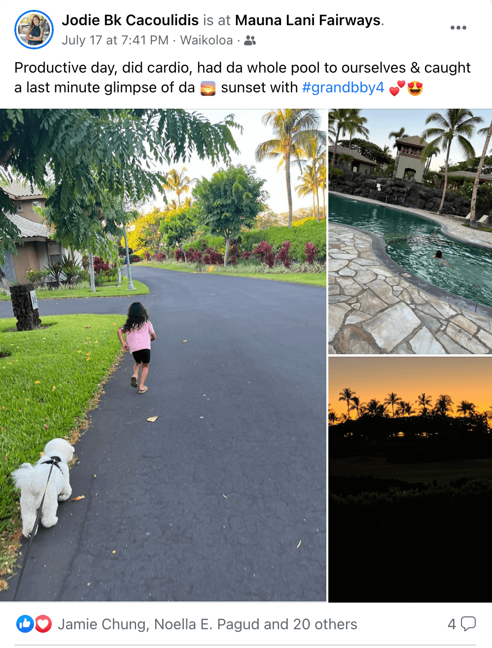 GO INTO YOUR PHOTO ALBUM AND CHOOSE FROM A RECENT PICTURE. IDEAS OF LIFESTYLE POSTS: Food, fun, family, going to the park, exercising, beautiful scenery, reading a book, the kids being goofey, having fun!!!